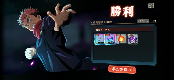 夢幻廻楼89階層のボスは常時術式の被ダメージを90%減少している。術式キャラでダメージを与えるのは困難なので、体術特化の影虎杖を筆頭としたアタッカーを編成して挑もう。