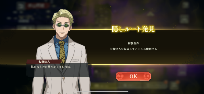 五条と乙骨を使う際は注意が必要で、「五条は7ターンで離脱」「乙骨は必殺スキルを使わずにスキル3」などの行動縛りがある。特に乙骨は必殺を使うと術式キャラになってしまうので、使用する際は気をつけよう。