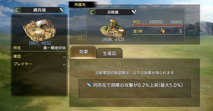 可能なら軍団メンバーで協力して、事前に「兵務郷」や「学務郷」を多く占拠しておくのがおすすめです。軍団内の占拠数に応じて最大5%まで部隊の攻撃・防御が上昇するため、兵力を温存して効率良く魏兵を討伐できます。