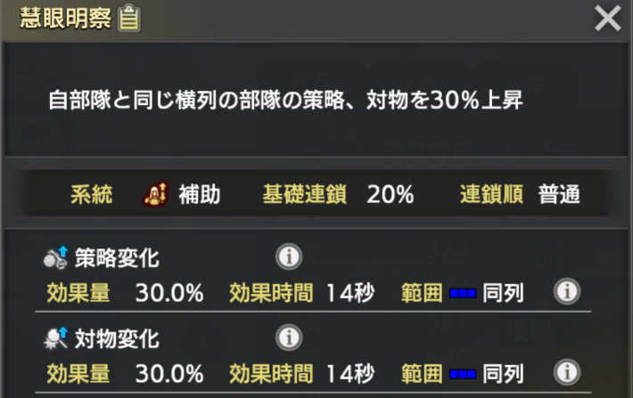 ![]() | ・戦法で自部隊の対物を10%上昇 ・信の副将として最適 |