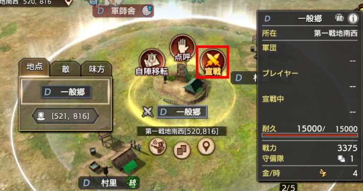 占拠したい郷に宣戦する