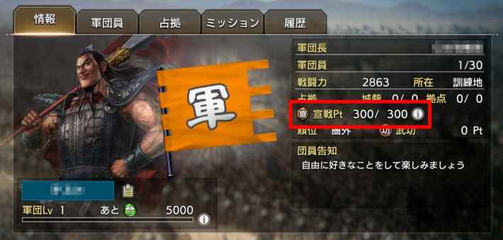 - 自身が軍団長か副団長である