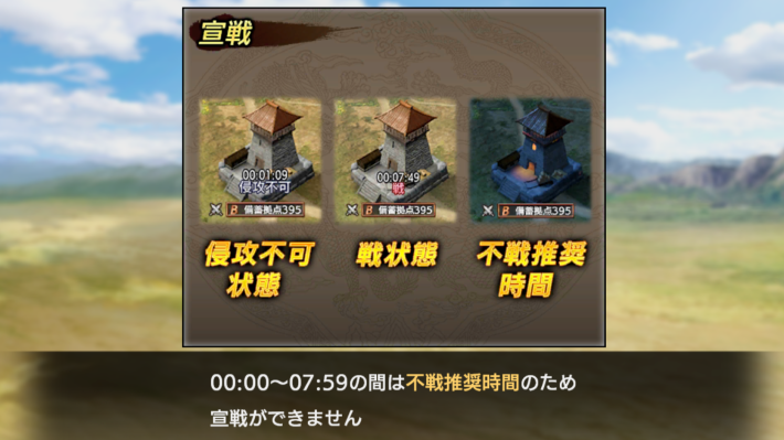 0時から7時59分の間は宣戦できない