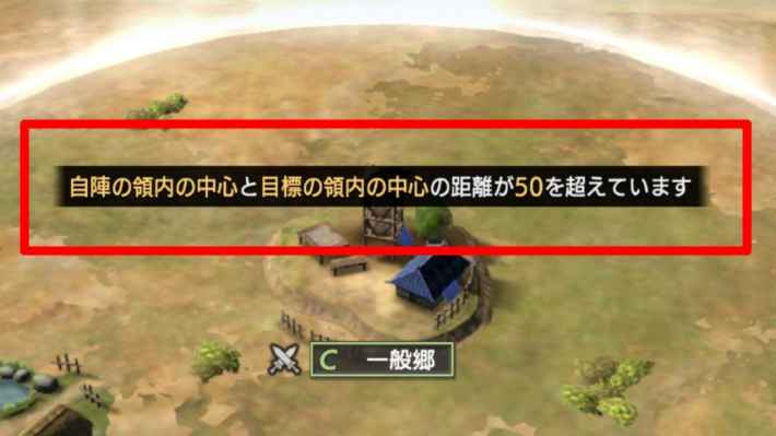 - 自陣から一定の範囲内に対象の郷がある