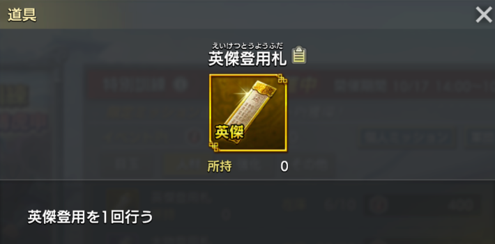 今回のイベントでは英傑登用札が10枚、大物登用札が20枚まで交換できます。どちらも最高レアの天賦900武将が狙えるアイテムなので、特別登用札・SSR が交換できたらこちらも交換しておきましょう。