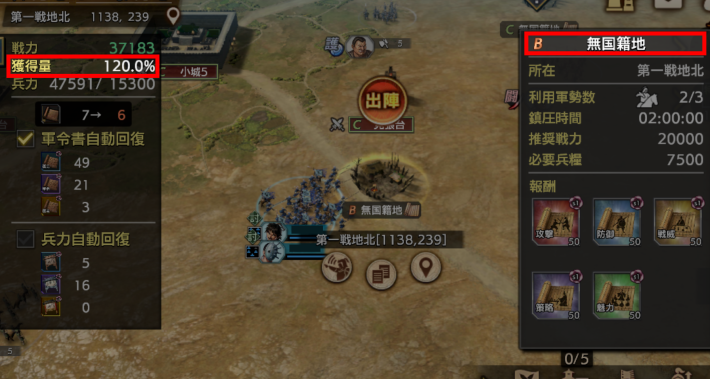 イベントポイントは、高ランクの無国籍地を鎮圧するのが消費リソースに対して最も効率的です。無国籍地は同ランクの拠点や郷を占拠していなくても部隊を送れるため、100距離圏内に1ランク上の無国籍地があれば積極的に鎮圧しましょう。