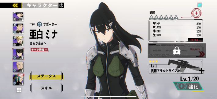 亜白ミナは味方のATKや与ダメージにバフをかけるキャラです。複数種のバフで火力を伸ばしやすく、特にレノのようなATK依存の能力持ちと相性がいいです。