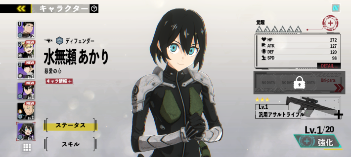 水無瀬あかり | ・貴重な回復スキル持ち ・味方への必殺技ゲージ上昇率バフも所持 ・自身の状態異常回復が可能 |