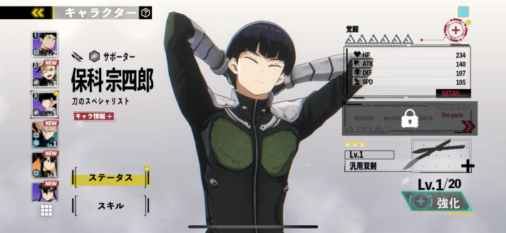 保科宗四郎はバディへのバフに特化したキャラクターです。スピードバフや与ダメージバフが可能で、戦闘スキルをバディに使用した際に対象のデバフも1個解除することができます。