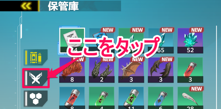 画面中央に表示される「保管庫」をタップ。