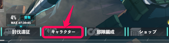 TOP画面下部にある「キャラクター」をタップしましょう。