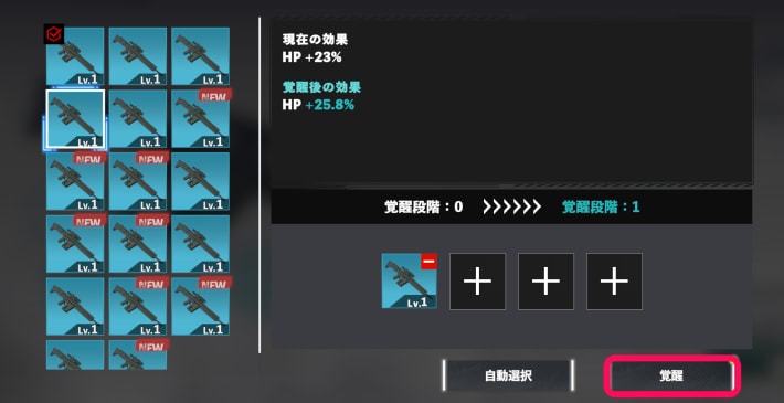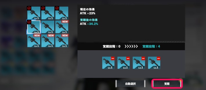 - 覚醒したい武器を選択