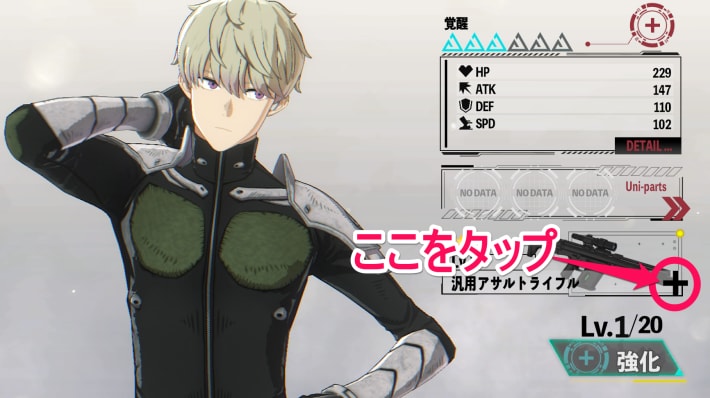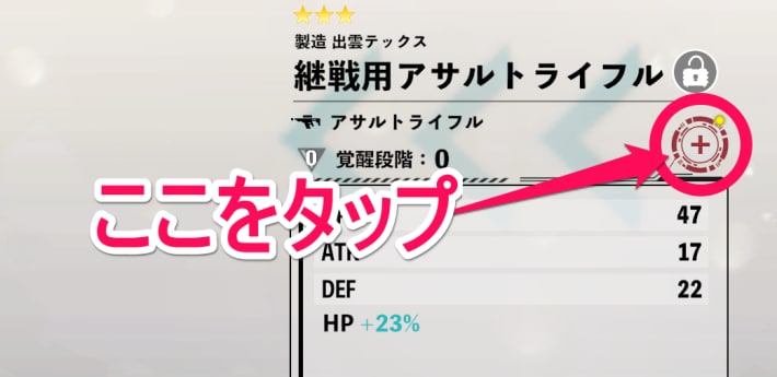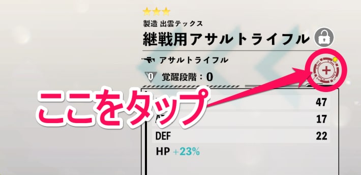- 武器名の右下にある「+」をタップ