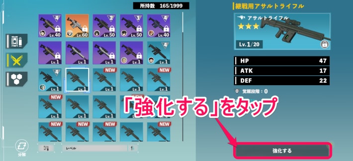 - 「強化する」をタップ