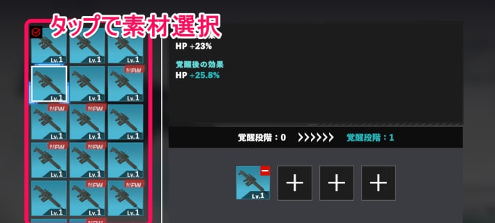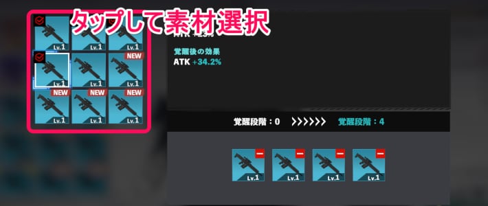 覚醒したい武器をタップしましょう。