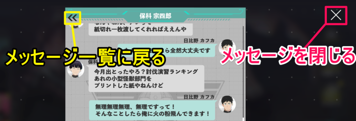 報酬の受取が完了したら、画面上部にある「<<」か画面右上にある「✕」を押しましょう。「<<」をタップするとメッセージ一覧画面に戻り、「✕」をタップするとメッセージ画面が閉じます。