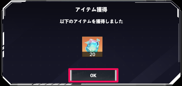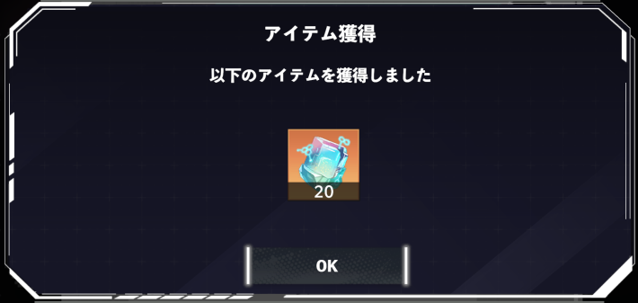 メッセージを全て閲覧すると、報酬画面が表示されます。「OK」をタップして報酬画面を閉じましょう。