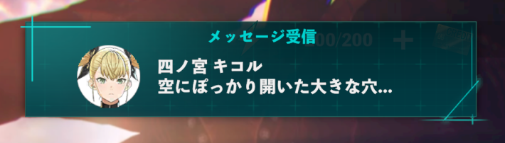 メッセージは、主人公カフカと各キャラのやり取りが見れるコンテンツ。メッセージを最後まで閲覧すると、次元晶×20が貰えます。