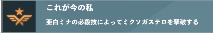 実績「これが今の私」は、亜白ミナの必殺技でミクソガステロを撃破することで獲得できます。ミナの必殺でミクソガステロを撃破できるようにHP調整を行うことが重要です。
