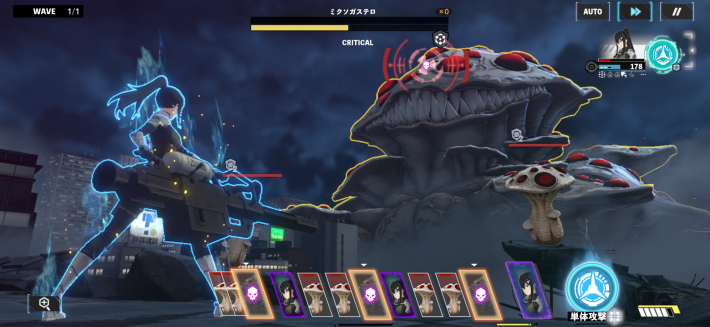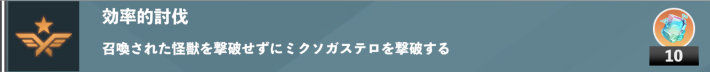 2-10で当実績を獲得するための立ち回りは上記の通りです。通常攻撃でミクソガステロのHPを削り、戦闘スキルでミナを強化した直後に必殺技を使用することになります。