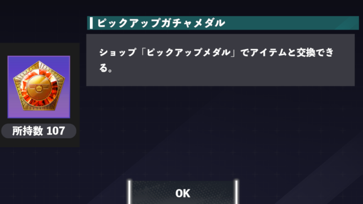 メダルによって、交換できるアイテムが異なります。ピックアップガチャメダルは、「ピックアップメダル」タブ内のアイテムと交換できるメダルです。