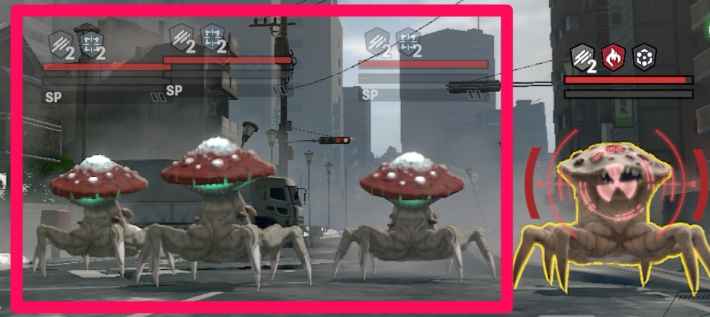 後半では敵は3体になりますが、中型の敵も出現します。そのため、基本的には拡散攻撃持ちは小隊2の適性が高いです。後半も、1体は耐久役を編成すると安定しやすいです。