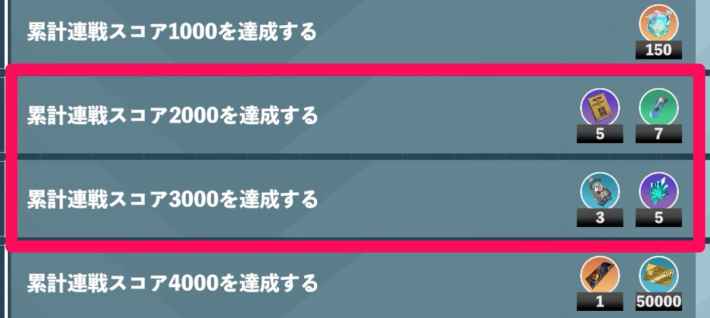 | 累計連戦スコア7000を達成する | 次元晶×150 |