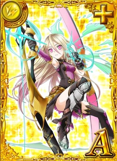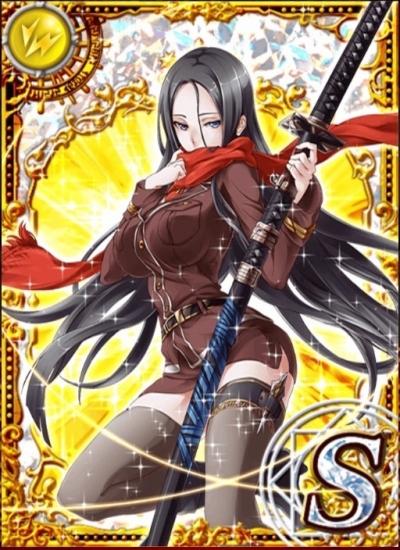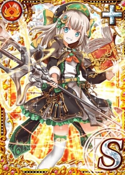 ![]() | その手は誰に差し出しているのか 表情に余裕があり「支配者」としての威厳が感じられる。流石は火属性で貴重な3ターン遅延持ちである。 全身を露出の少ない軍服を固め全く隙を感じられない。その左手を掴んで連れ去られてしまいたい。 |