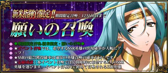 スタートダッシュキャンペーンとして、英雄の旅というミッションを達成すると誰でもSSRのシェリーを入手できる。被った英雄は限界突破の素材になるため無駄にはならないが、他のSSR英雄を狙ったほうが得策だ。