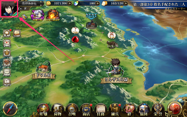 MAP画面左側にあるメールやイベント、英雄の旅から聖魔券(ガチャチケット)を受け取れる。プレイ開始時期によってイベントやメールの内容は変わるが、受け取れるだけ全て受け取ってしまってOKだ。