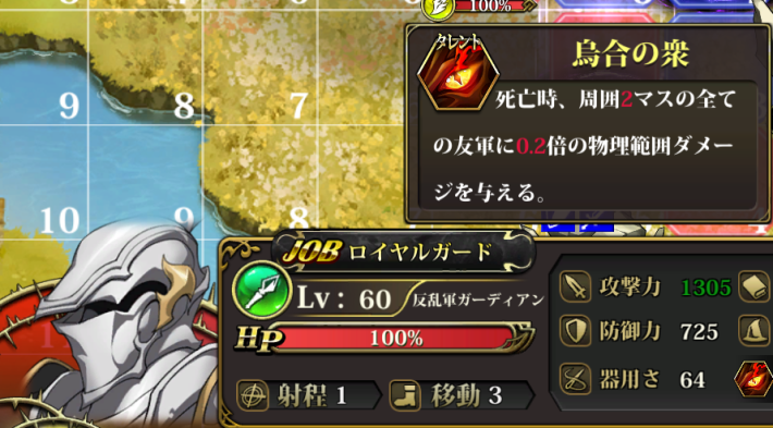 敵の飛兵/騎兵/槍兵は、死亡時に周囲2マスの友軍に範囲ダメージを与えるタレントを持つ。撃破すると周囲の敵のHPを削れるため、固まっている敵を連鎖して撃破が可能だ。
