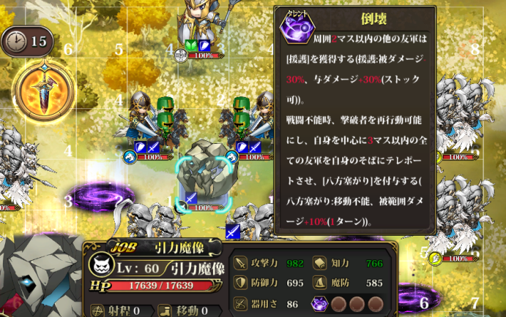 引力魔像は撃破すると、撃破した英雄は再行動する。どの英雄で撃破するか調整しながら、効果的に再行動を利用しよう。