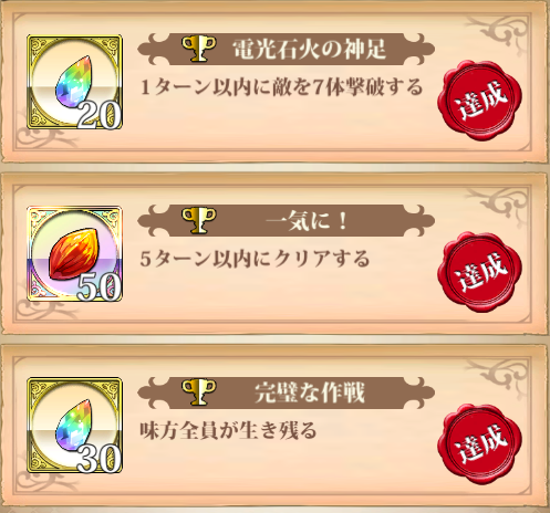 「反乱軍の動乱」では3つの実績が用意されている。条件を満たしてクリアすると聖魔晶などの報酬を追加で入手できるため、可能な限り実績獲得を目指そう。