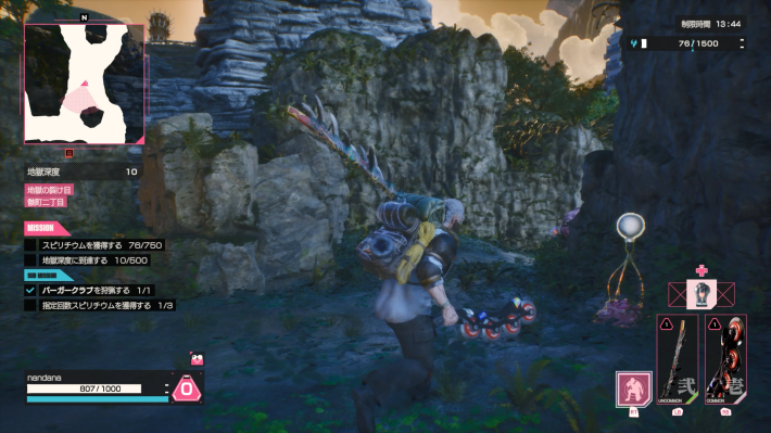 地獄門内には、アイテムを格納しているアイテムバドが点在しています。アイテムバドには黄色のフチが付いていて見つけやすいので、アクセスして中にあるアイテムを入手しましょう。