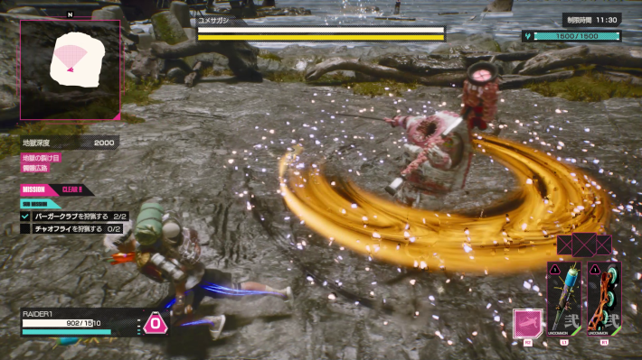 中盤以降で入手できるコアは「しゃがむと体力回復」、「レイジゲージ自動回復」がおすすめです。敵が強くなるため体力回復手段は多い方がよく、レイジゲージも溜まればデスブロウで敵を倒しやすくなります。