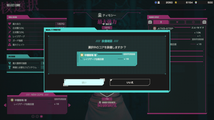 序盤で入手できるコアで最もおすすめなのはステップが連続で出せるようになる「ステップ回数+1」です。次にレイジゲージが1本増える「レイジゲージ+1」、そして「特殊な場所が登れるようになる」がおすすめです。