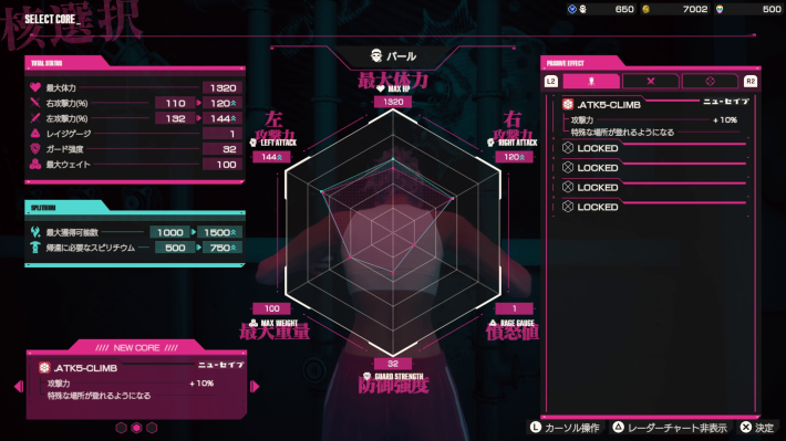 ボディランクは最大で6まで上がります。一方で探索で死亡するとボディランクは1に戻り、装備していたコアをすべて失います。