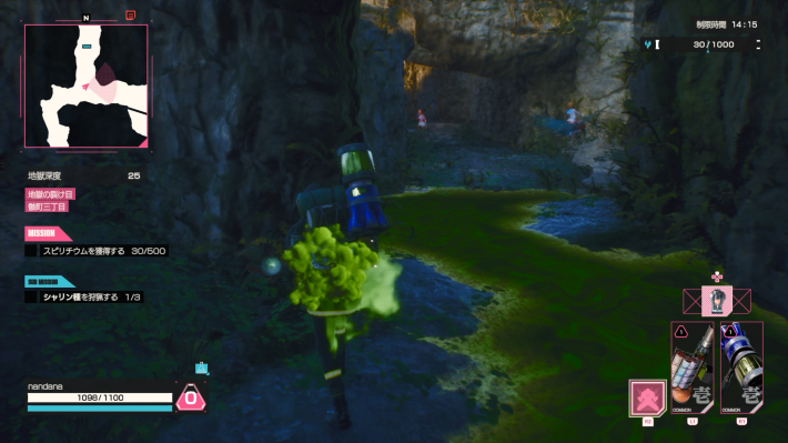 侵入して緑色の穢れに触れると、ジワジワと体力が減少します。そのダメージは岸に上がった後も、およそ3秒継続し、回復手段がない状況では危険な罠になります。