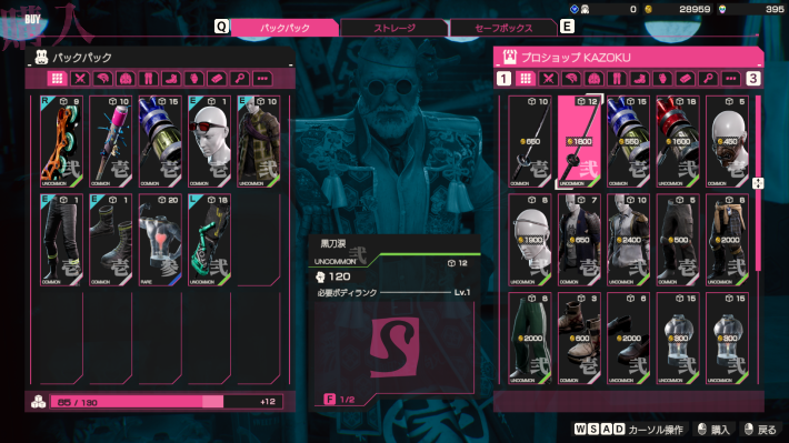 プロショップKAZOKUで武器が購入できますが、キルコインの必要量が多いのでショップで買うのはキルコインに余裕があるときにしましょう。キルコインはストレージの解放に優先的に使うのがおすすめです。