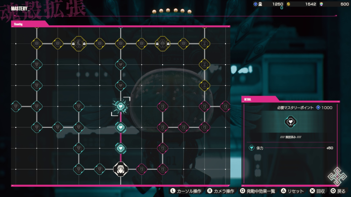 ボディレベルとコアは死亡するとリセットされますが、マスタリーの強化はもそのまま残ります。死んでもマスタリーポイントはもらえるので、探索を繰り返してポイントを溜め、マスタリーを解放しましょう。これにより、少しずつ強くなっていきます。