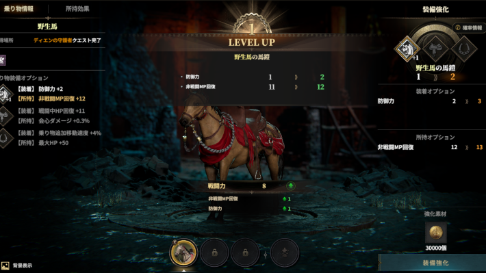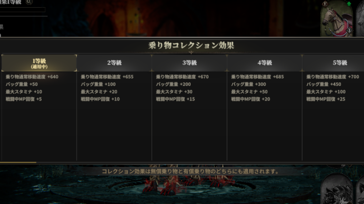 乗り物の装備強化をすると、ステータスを上げて戦闘力をUPできるので適宜強化していきましょう。また、乗り物のコレクション効果でも、追加ステータスを獲得可能なので集めていきましょう。
