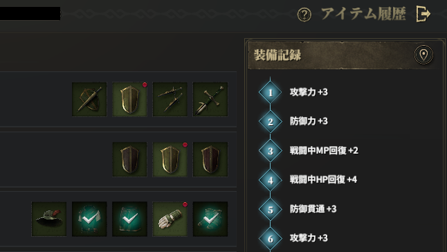 アイテム履歴を記録してポイントを獲得すると、追加ステータスを入手でき戦闘力UPが可能です。ただし装備は消えてしまうので、購入や取引で入手した装備は使用するか記録するかは慎重に判断しましょう。