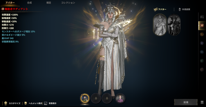 アバターを装着することで、戦闘力を上げることができます。アバターはガチャのほか、実績、ゴールドショップなどでも入手可能なので集めましょう。なお、コレクション効果により、収集を進めることで追加ステータスの獲得も可能です。