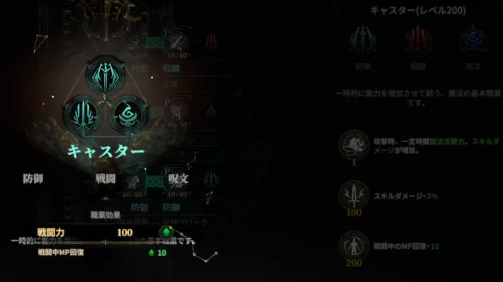 職業・アビリティはゲーム開始後すぐに確認できるコンテンツではなく、第1幕11章完了後に解放されます。こちらの職業レベルに応じて適応される能力も、戦闘力に影響します。自身の職業に応じたアビリティをセットし、戦闘によって強化させて職業レベルも上げていきましょう。