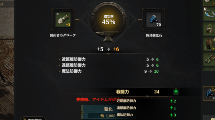 武器、防具、アクセサリーの装着、強化・錬成によっても戦闘力は上がります。武器、防具、アクセサリーを入手したら装着や強化をしていきましょう。