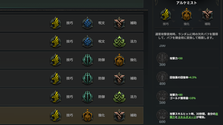 耐久が補えている場合は、できるだけ多くの敵討伐を狙って、例えばストライカーなど火力寄りの職業選択もありです。