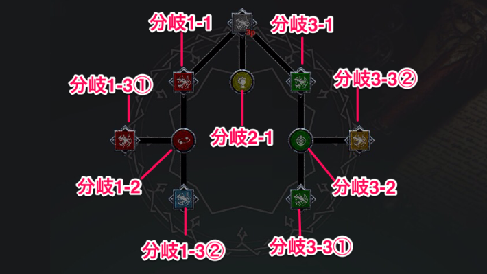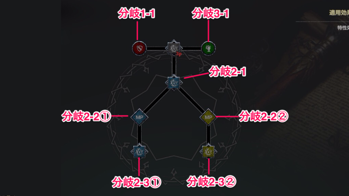 | 対象に3回の魔法ダメージを与える。スキル2回ヒット時、対象に50%の追加魔法ダメージを与える。 |