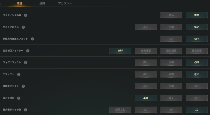 必要スペックギリギリのPCで遊ぶ場合は、グラフィック設定を「低」にして最大表示キャラ数を「10」にするのがおすすめです。設定を下げることで、プレイ環境が快適になる可能性があります。