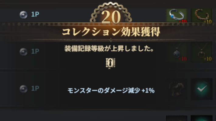 項目ごとにある全ての対象アイテムを記録すると、ポイントを獲得できステータスが上がります。