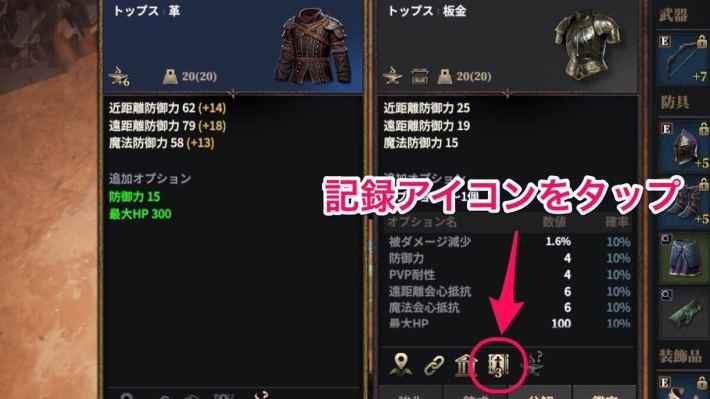 記録を押すと記録完了です。なお、赤い丸がついているアイテムは、そのまま記録することが可能です。
